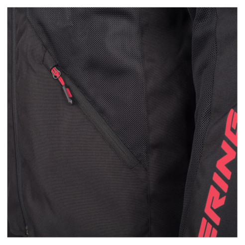 Kørekomforten er i højsædet, især takket være tekniske løsninger, der er rettet mod motorcyklistens velbefindende, såsom anti-fladder-systemet i ærmerne, der eliminerer ubehageligt flagren ved høje hastigheder. Skiftet fra en sommerkonfiguration til en overgangs- eller vinterkonfiguration sker øjeblikkeligt takket være de store mesh-indsatser og sikrer, at du altid kører ved den ideelle temperatur. Stroppen til fastgørelse til bukser fuldender dette sæt, forhindrer indtrængen af kold luft og sikrer en eksemplarisk gennemgående beskyttelse.