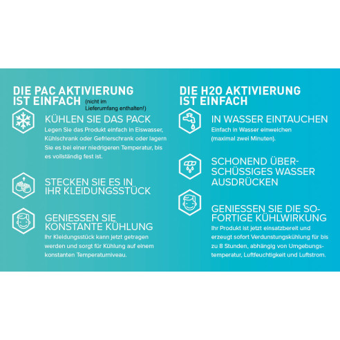 Kølende stof til op til 28 timers behagelig afkøling pr. aktivering og INUTEQ-PAC biobaseret PCM-indsats (bestilles separat).