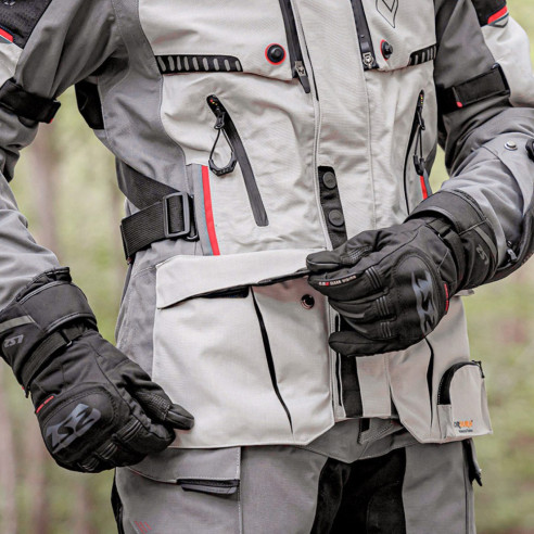 - Lamineret 3-lags CORDURA® stof giver uovertruffen holdbarhed og slidstyrke. - Udtagelig termisk foring og alsidige ventilationspaneler gør jakken ideel til alle vejrforhold. - CE-godkendte beskyttere på skuldre og albuer samt en anordning til ekstra beskyttere sikrer maksimal sikkerhed. - Talrige justeringsmuligheder sikrer en perfekt pasform. - Talrige vandtætte lommer giver tilstrækkelig opbevaringsplads til alle vigtige ting.
