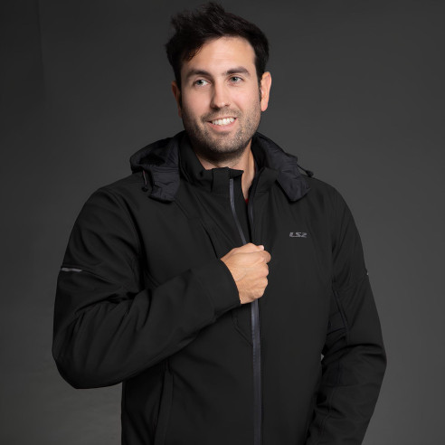Til motorcyklister, der kører i al slags vejr: LS2 Bolton Man kombinerer softshell-komfort med motorspecifik sikkerhed og smarte detaljer til hverdagen i byen.
